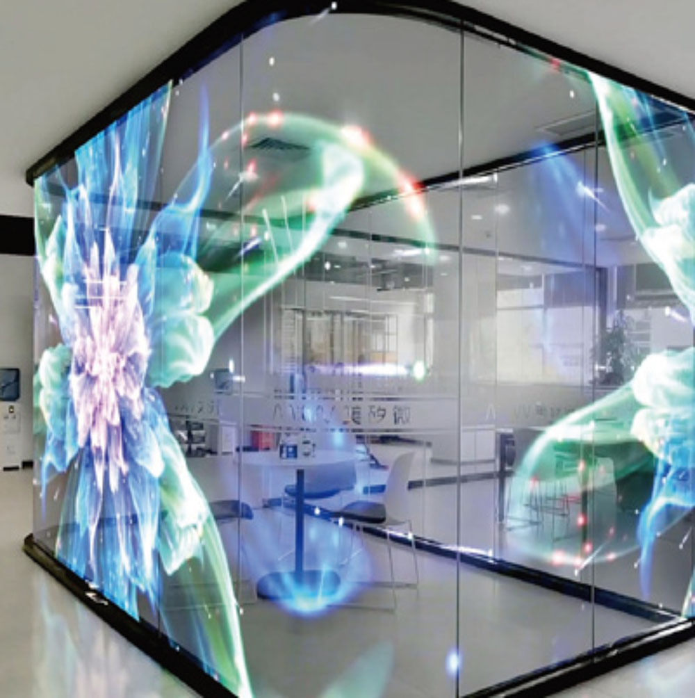 超クリアかつ極薄、高透明度の最高級素材使用。最大 80~90% の透過率と、軽量でわずか 1.8mmの薄さなので曲面や透明なガラス全体に映像を映し出すことが可能です。