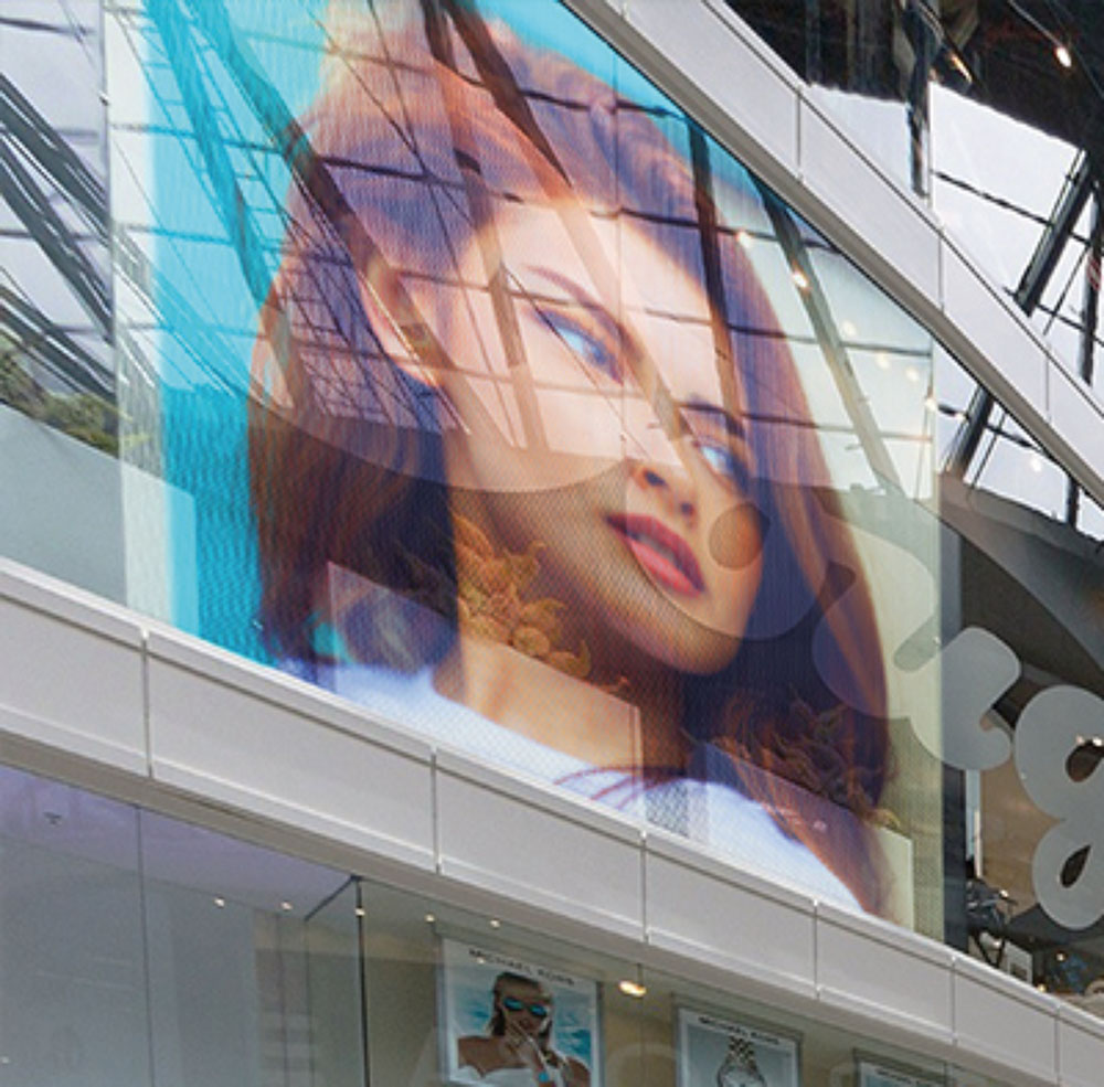 透過性を活かしたガラス面のサイネージ化に最適で、曲面にも対応でき多種多様にクリエイティブな空間活用を実現できます。軽量のため設置負担も軽減。