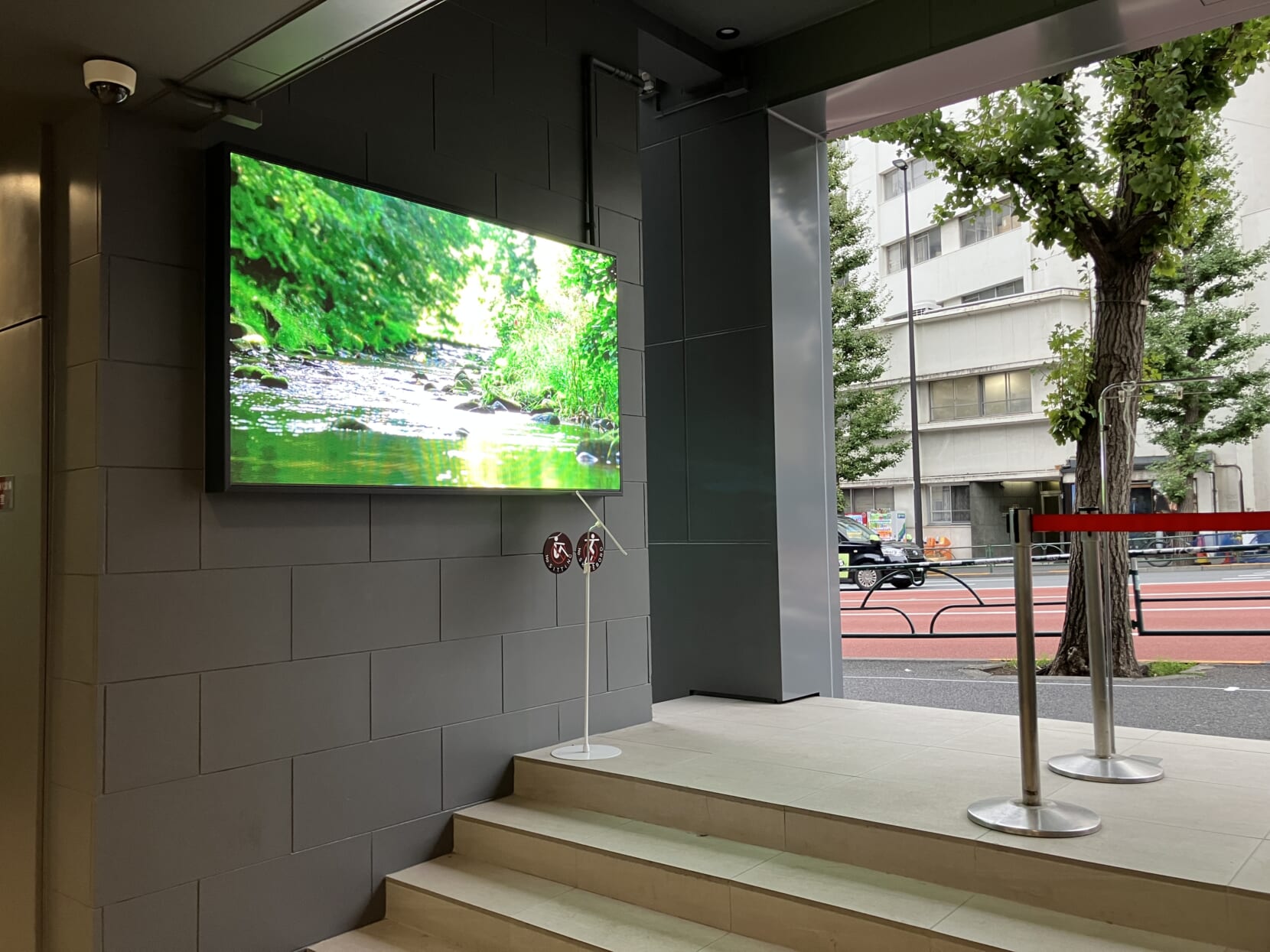 代官山 鎗ヶ崎交差点に立地する代官山 Za House様の外壁と入口壁面の2か所にLEDビジョンをご採用頂きました。