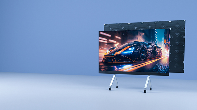 輝度600cd/m²で明るい部屋でもくっきり見える。COB LEDタイプで耐衝撃性に優れ、全面フロントメンテナンス設計により、壁掛け状態でも簡単にメンテナンス可能です。